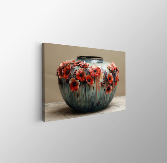 Tablou Canvas vaza cu flori rosii stil pop art | The Print Studio