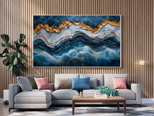 Tablou Canvas valurile albastre stralucesc fluid | The Print Studio
