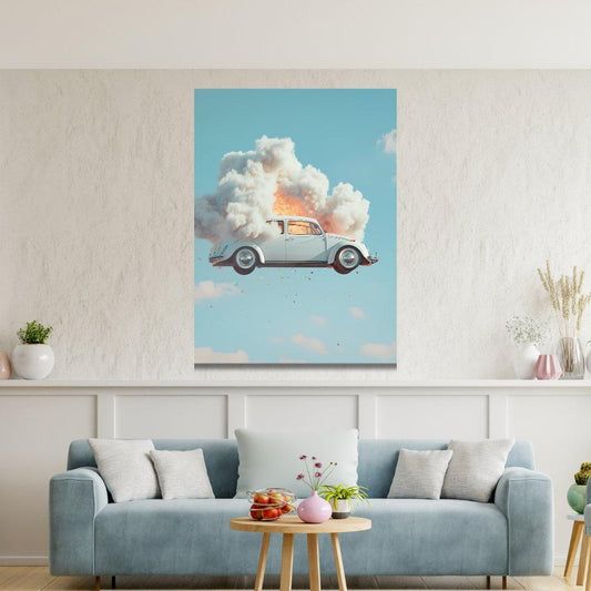 Tablou Canvas Volkswagen Beetle in peisaj suprarealist captivant | The Print Studio