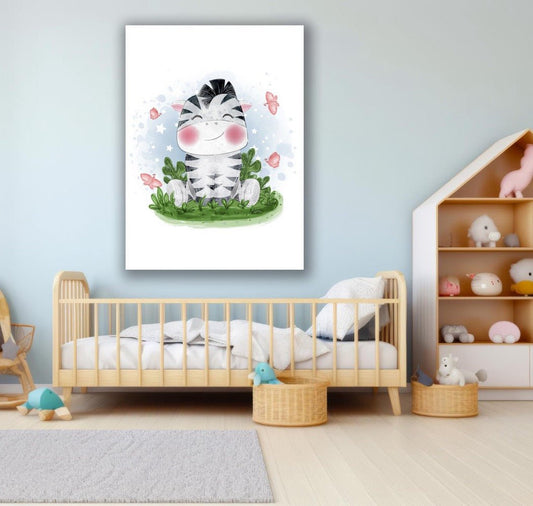 Tablou Canvas zebra zambitoare printre flori in gradina | The Print Studio