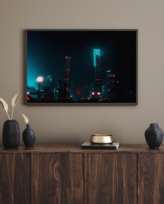 Tablou Canvas zgarie-nori luminati stralucesc in noapte | The Print Studio