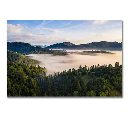Tablou Canvas Munte Invaluit in Ceata Padure Verde Realism | The Print Studio