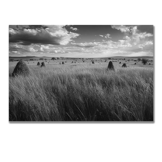 Tablou Canvas Monocrom: Peisaj Dramatic cu Iarba si Cer | The Print Studio