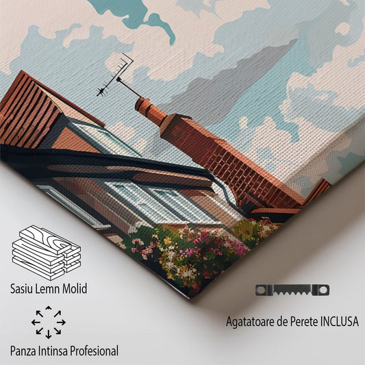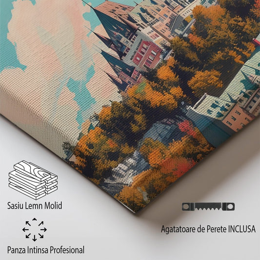 Tablou Canvas Print oras Quebec culori pastelate nostalgie stil ilustrativ