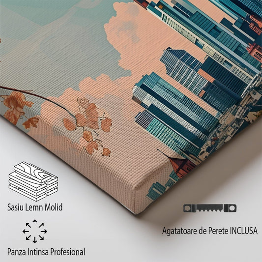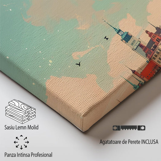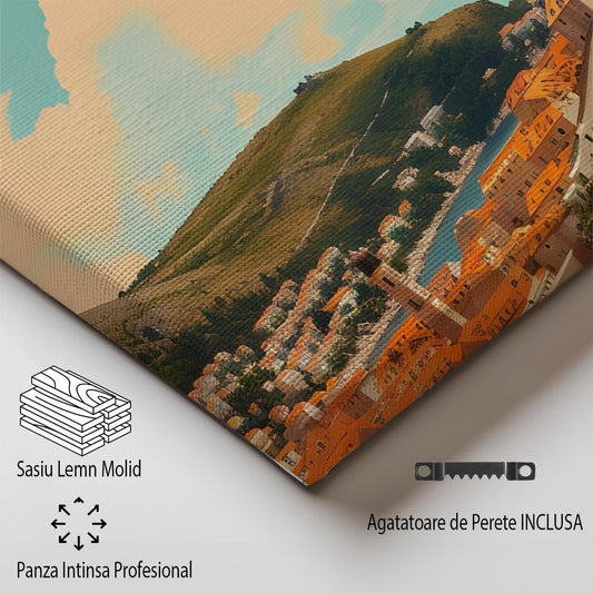 Tablou Canvas Print Sintra: case colorate si turn, stil artistic vibrant
