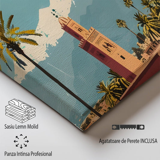 Tablou Canvas Print Marrakech apus vibrant palmieri stil ilustrativ