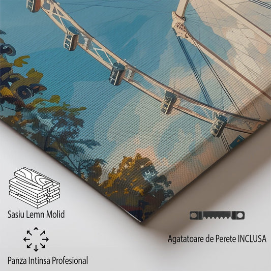 Tablou Canvas Print roata panoramica Singapore cer albastru, stil ilustrativ