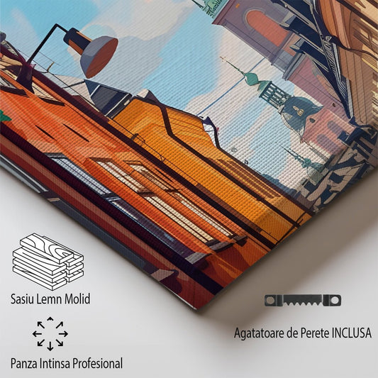 Tablou Canvas Strada Stockholm cu cladiri vesele in stil ilustrativ | The Print Studio