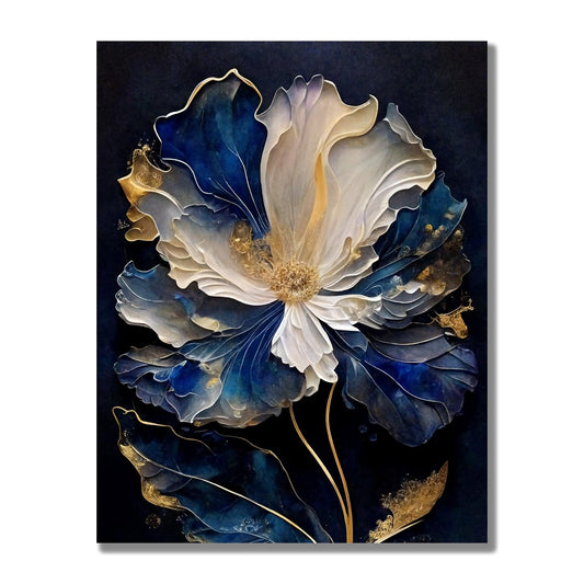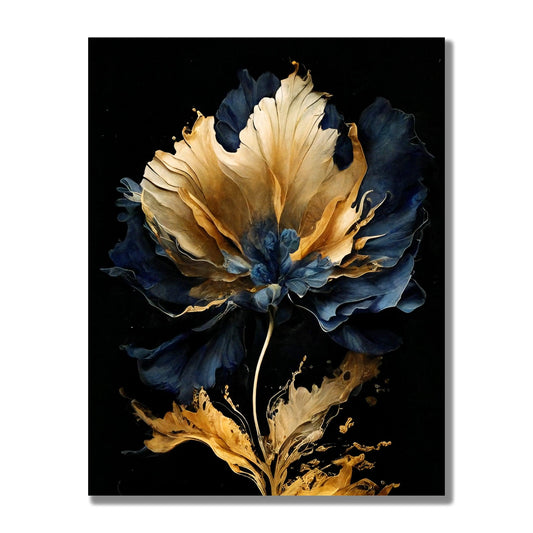 Tablou Canvas floare albastra eleganta aurie in lumina calda | The Print Studio