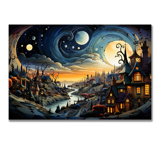 Tablou Canvas sat magic luminat sub clar de luna | The Print Studio