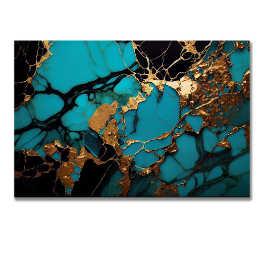 Tablou Canvas marmura turcoaz si aurie misterioasa | The Print Studio