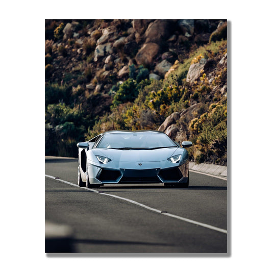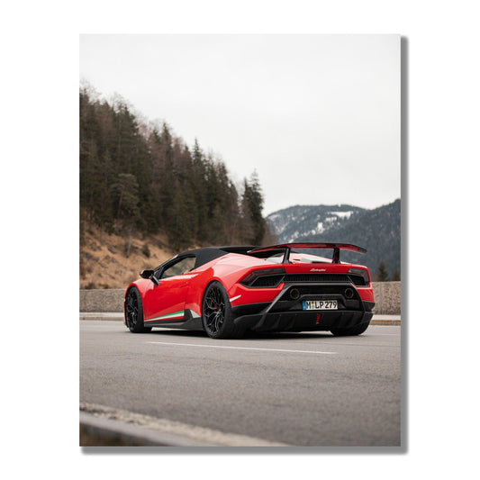 Tablou Canvas Lamborghini stralucitor in peisaj montan | The Print Studio