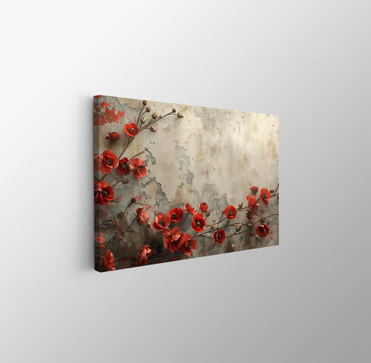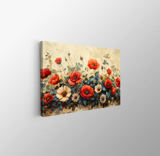 Tablou Canvas flori maci rosii pe fundal artistic retro | The Print Studio