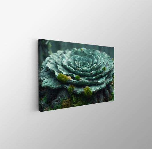 Tablou Canvas floare sculptata pe fond de muschi verde vibrant | The Print Studio
