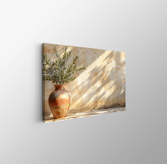 Tablou Canvas vas ceramic si umbra frunze maslin realist | The Print Studio