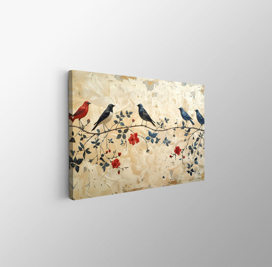 Tablou Canvas Pasari delicate pe ramura cu flori primavaratice | The Print Studio