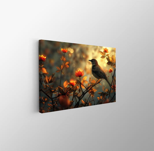 Tablou Canvas pasare delicata printre flori si ramuri de primavara | The Print Studio