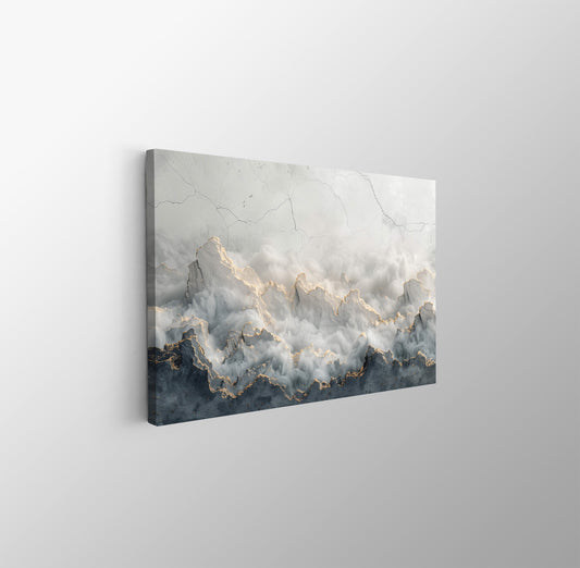 Tablou Canvas munti invaluiti in ceata si lumina aurie | The Print Studio