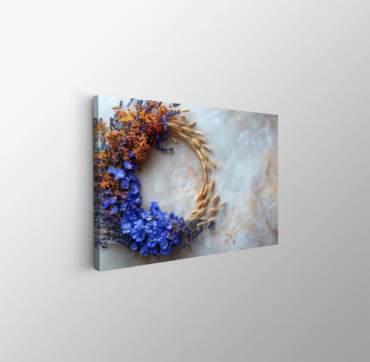 Tablou Canvas floare albastra intre spice aurii realist decorativ | The Print Studio