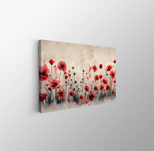 Tablou Canvas camp vibrant de maci rosii sub cer senin | The Print Studio