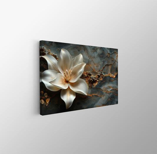 Tablou Canvas floare eleganta pe fundal abstract de marmura | The Print Studio