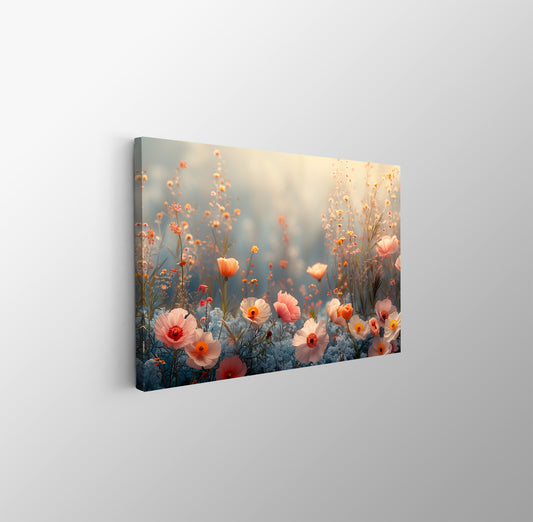 Tablou Canvas camp pastelat de flori intr-un peisaj realist | The Print Studio