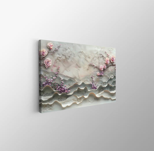 Tablou Canvas flori roz in relief pe ramuri texturate | The Print Studio