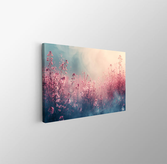Tablou Canvas camp pastel cu flori roz sub cer senin | The Print Studio