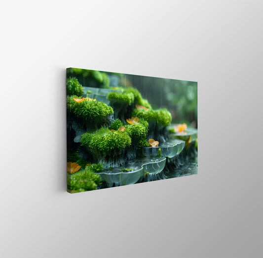 Tablou Canvas muschi vibrant si picaturi de roua naturala | The Print Studio