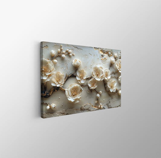 Tablou Canvas flori bej delicate pe ramuri in textura abstracta | The Print Studio