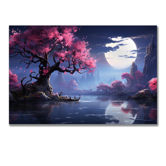 Tablou Canvas copac sub clar de luna visatoare | The Print Studio