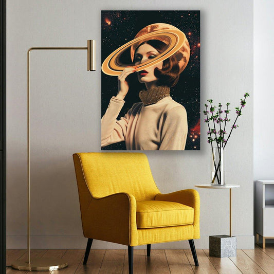 Tablou Canvas femeie sub Saturn in stil cosmic si elegant | The Print Studio