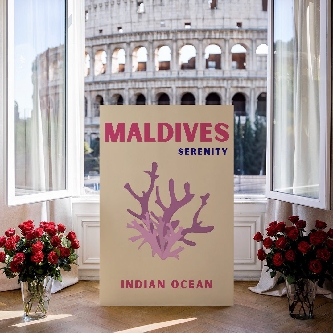 Tablou Canvas Print corali lila Maldive serenitate, stil minimalist