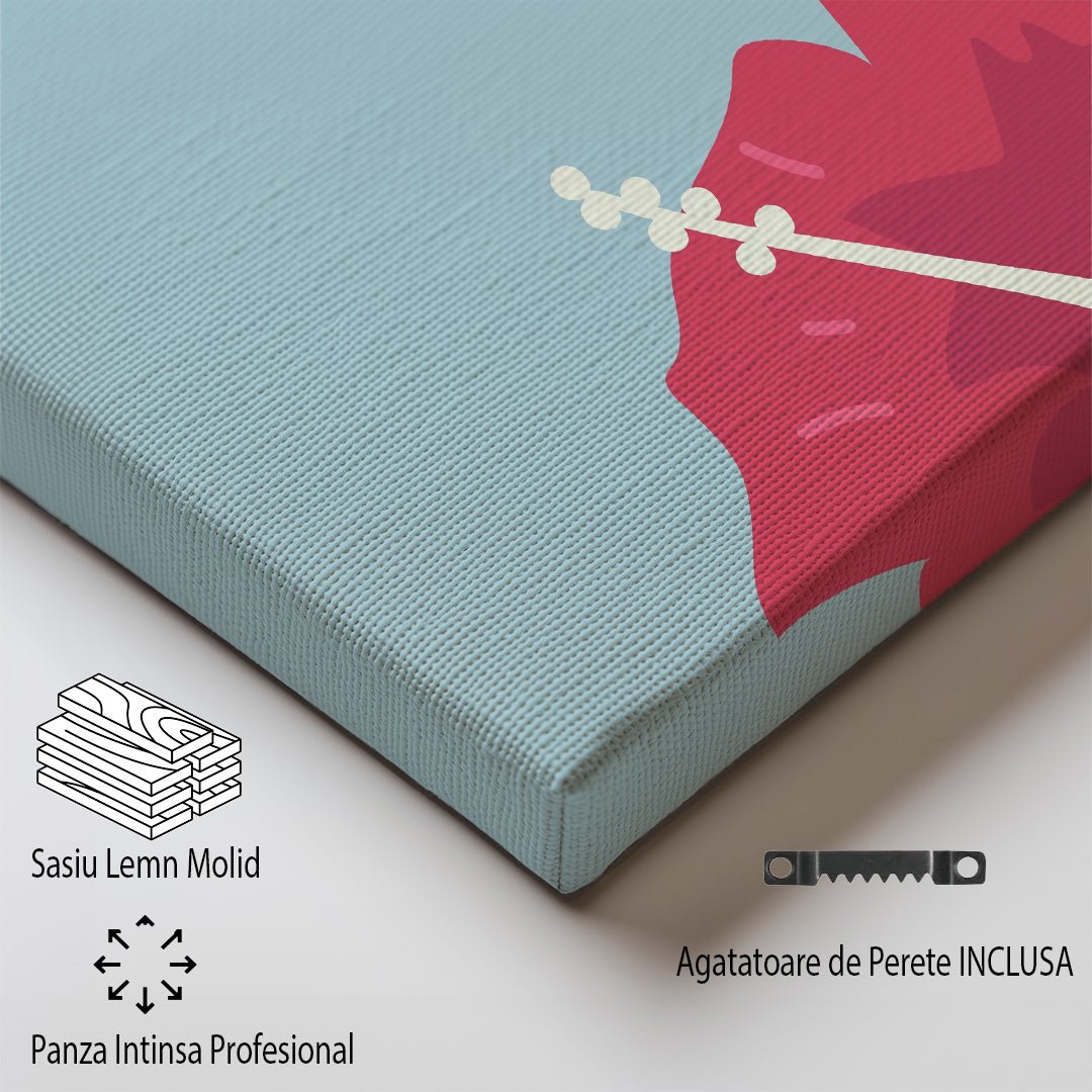 Un tablou canvas pe panza poate transforma orice spatiu simplu intr-un paradis tropical. Hibiscusul vesel in stil minimalist aduce vibratie si prospetime, oferind un moment de relaxare si fericire de fiecare data cand il privesti. Perfect pentru cei care iubesc natura si doresc sa introduca o doza de exotism in viata lor cotidiana.