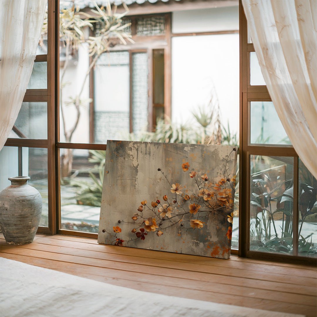 Transforma-ti spatiul intr-un refugiu cald si primitor cu tablou canvas flori portocalii pe fundal de toamna vintage. Aceasta piesa speciala de arta pe panza aduce o explozie de culoare si un sentiment de liniste, evocand frumusetea naturala a anotimpului autumnal.