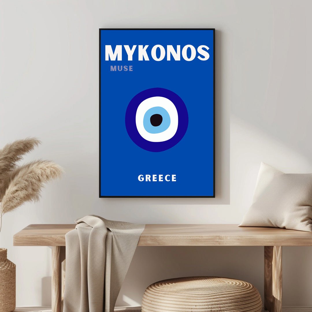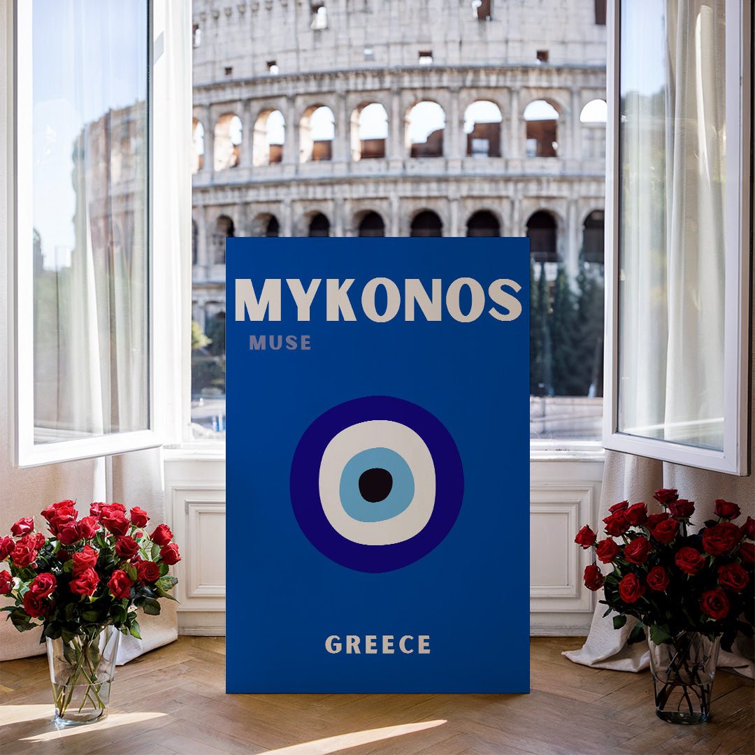 Tablou Canvas Grecia albastru alb minimalist si mistic | The Print Studio