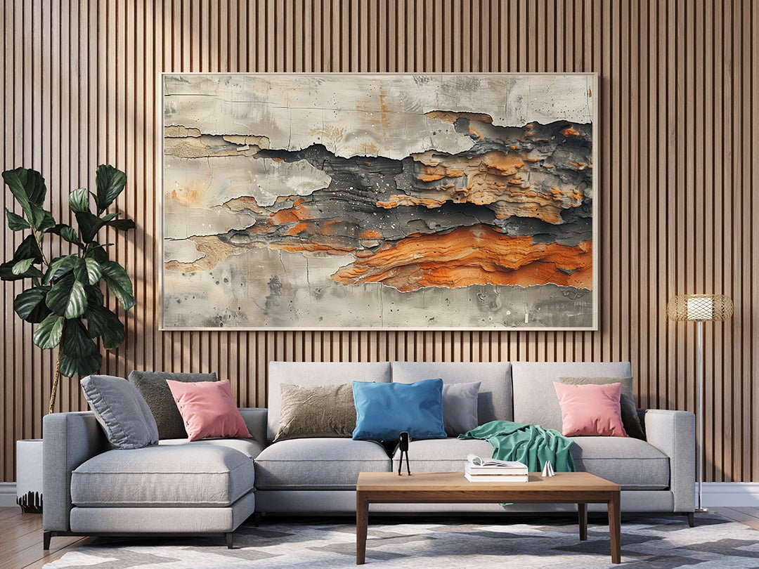 Imaginati-va o lume unde straturile de nisip portocaliu si gri se inalta, creand un dans meditativ al culorilor care inspira liniste si introspectie. Acest tablou canvas pe panza aduce o atmosfera de calm si rafinament in orice incapere, oferindu-va un moment de evadare din agitatia cotidiana.